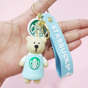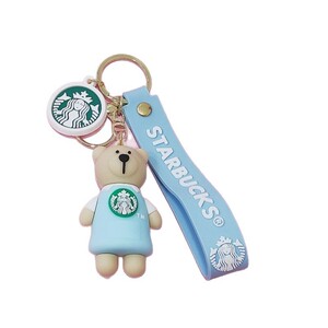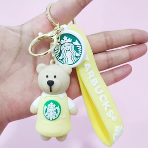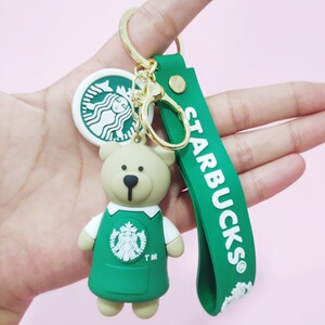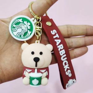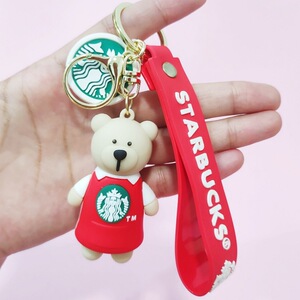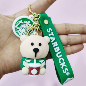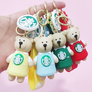 創意的なアニメのミルクティーの熊の滴のゴムの鍵はかわいい人形の中実の鍵の掛け物のシリコンの熊の包みの掛け物を掛けます。