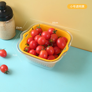 PET二重衝突色野菜水たまり台所家庭用プラスチック果物皿客間ろ過野菜かご洗浄野菜かご
