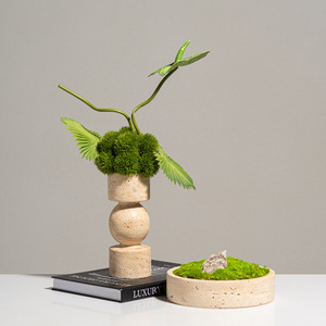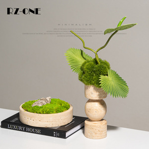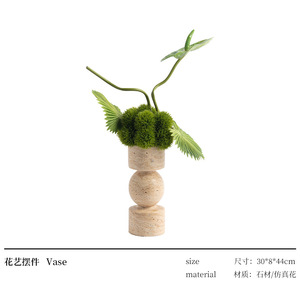 職人十三わびさび風高級ヴィラモデルルーム緑の植物ホテル洞窟石花瓶装飾品大理石の花器