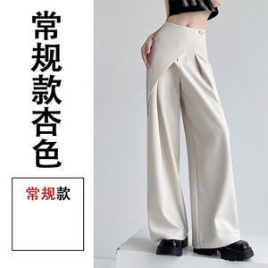 2枚式のスーツのワイドパンツの女性のハイウエストのデザイン感があります。