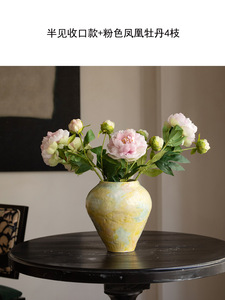 景徳鎮ランタノリンファッションシンプルな彩色花瓶新中国式純粋な手作り客間玄関高贅沢な振り子半見瓶