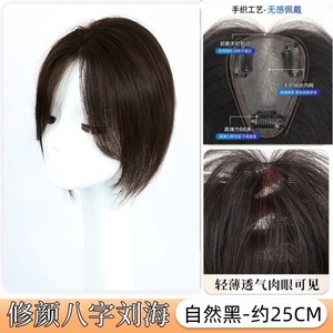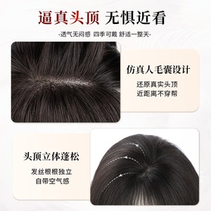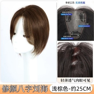 かつらの前髪の女性の水滴網の頭の上で髪を補充します。