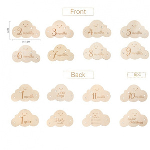 木の赤ちゃんの雲の両面の成長のマイルストーンの赤ちゃんの月の札の誕生月の記録の写真を撮る記念の道具