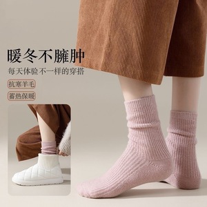 メリノウールソックス レディース パイルソックス 秋冬 吸汗性 ロングソックス 無地 おしゃれ レディースソックス ミドル丈 二本針編み 輸入専用