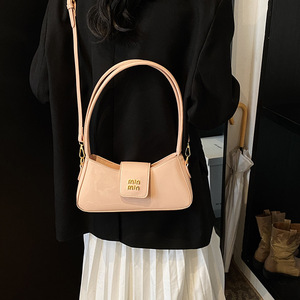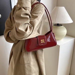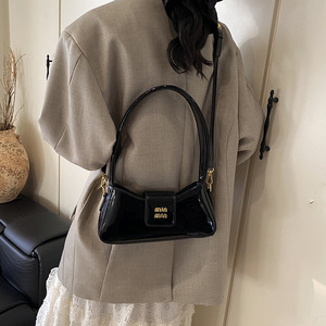 高級感のある漆の皮の包みの女性の2025新型の春夏の超火の百合の肩のわきの下でフランスの小さい人のハンドバッグを包みます。