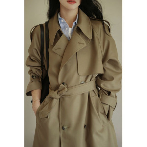 中長の膝を越えた英倫風衣コートの女性春秋2025ファッションの小柄な立襟コート