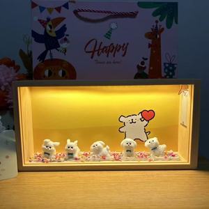 新しい中空 USB ドライフラワーフォトフレーム発光両面透明ガラスフレームクリエイティブ垂直木製フレームナイトライト