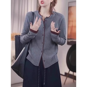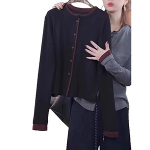 ファッション長袖tシャツ女性春新作ボタンステッチカーディガン上着ファッションゆるい着痩せ大きいサイズショートコート