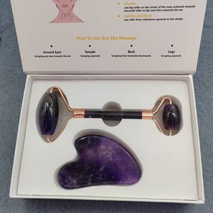 紫水晶玉マッサージローラーダブルヘッド玉ローラープラス指ハート形紫晶スクレーパーセット