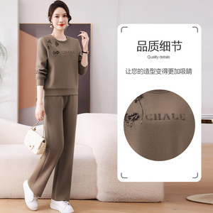 50代のお母さんの春の服装のレジャーのスポーツのスーツの広い奥さんの気高い上着の中で高齢者の春秋の婦人服のパーカー