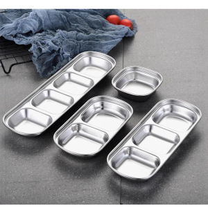 304ステンレスの韓国式の2格の3格の味の皿の金色の調味料の皿の鍋の調味料の皿の調味料の皿の焼肉の食器