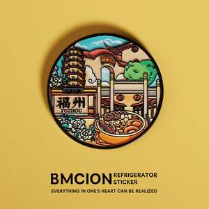 福州都市観光文創円形金属冷蔵庫は観光記念品を貼っています。