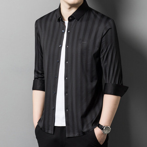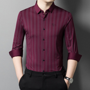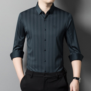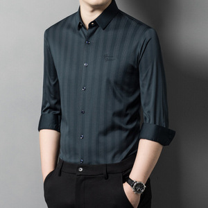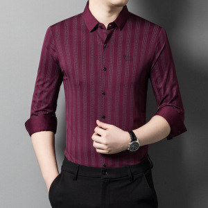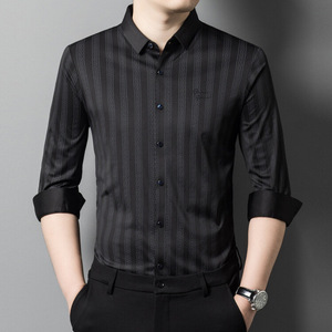 喜義父2025春秋新型男性長袖シャツ氷糸中年お父さん高級ビジネスカジュアル無痕寸衣