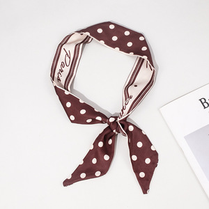 【ウェーブドットシリーズ】●ブラウン水玉】シルクスカーフ1枚