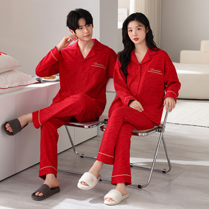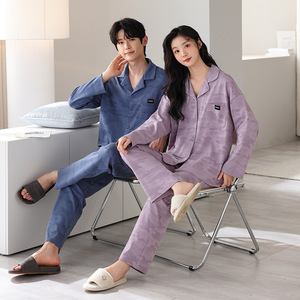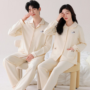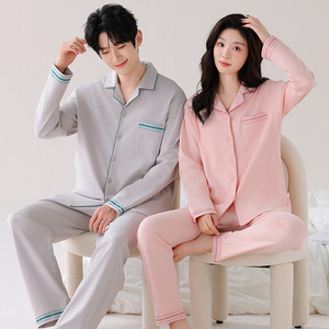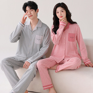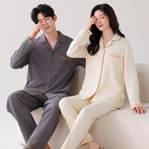 2025年新作カップルパジャマ レディース 春秋 メンズ レディース 綿100% 長袖 カジュアル 大きいサイズ カーディガン ホームウェアセット