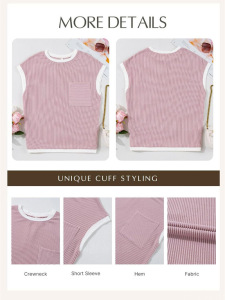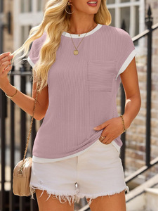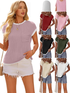 2025年新作 半袖 レディース リブ編みニットTシャツ 春夏 アウトドア ポケット付きトップス 通勤 ポケットデザイン