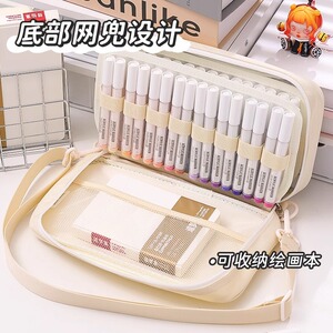 蓝果收纳包大容量多层丙烯马克笔收纳手提斜跨单肩透明多功能笔袋