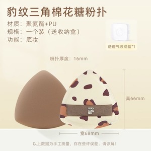 Guo Xiaoniu ヒョウ柄三角パウダーパフ (1パック コーヒー色)
