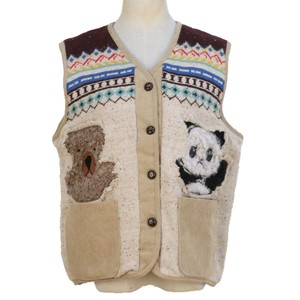 19192 アプリコット ニット アニマル ベスト カーディガン