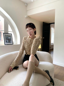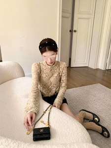 SourceWithU裸色朝セイ秋冬b入裸カードその磨かれた毛の小さい立襟の底のシャツの女性のレースの中で合わせます。