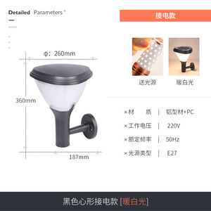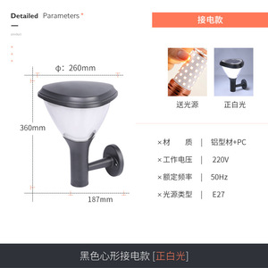ブラックハート型ウォールランプ ソーラーモデル【白色光】