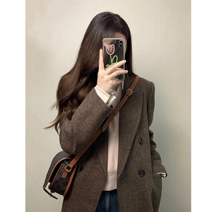 (福祉) 人字紋ラシャコート2025新型毛のコート感小柄な韓国系スーツ