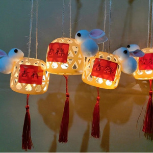 ウサギと翡翠のペンダントが付いたプラスチック製のランタン DIY