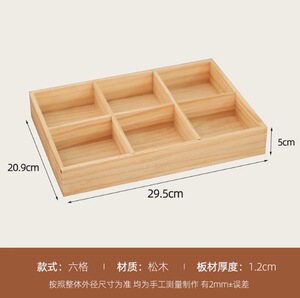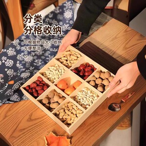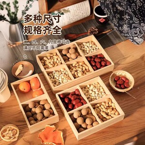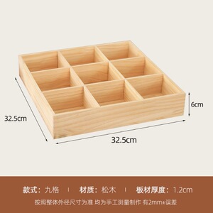 木造の九宮格の収納箱のドライフルーツのお菓子の皿の六宮格のお茶の皿のデスクトップの格子の箱の材料はトレーを展示します。