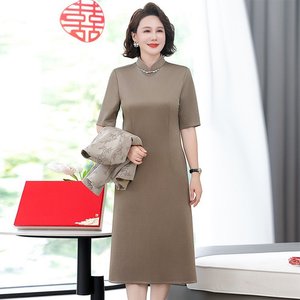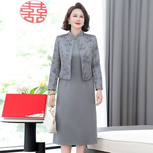 お母さんの春秋女性のウェディングドレスのワンピースのおばあさんの中高年のスーツはスカートを詰めます。