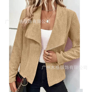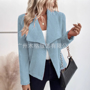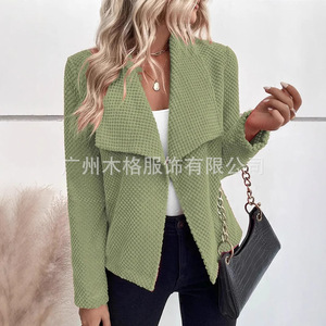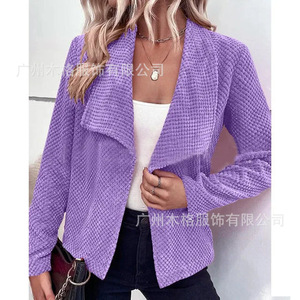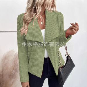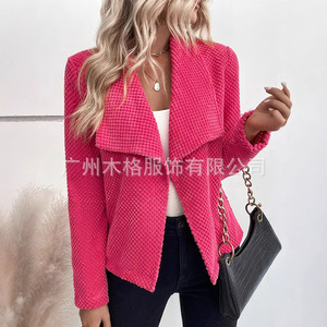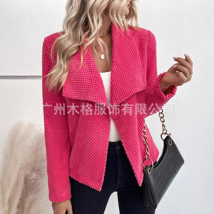 2025欧米の対外貿易の新型の秋冬は襟の純色の長袖をひっくり返して簡単に女性の小さいスーツの外でショートコートを掛けます。