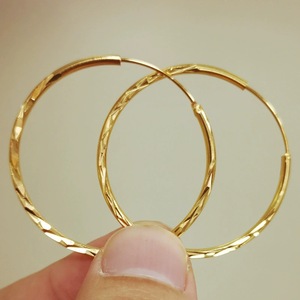 人気アクセサリー 18K金メッキ 直径1.4inch 大きな丸いリング 幾何学的な凹凸型 レディース ページェントイヤリング