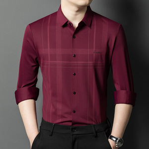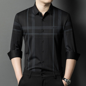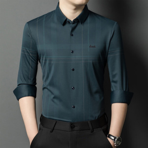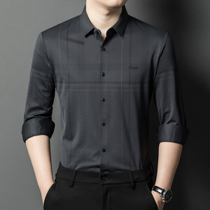 喜義父無熱無痕男性氷糸長袖シャツ2025春新作カジュアルストライプ氷糸シャツブーム