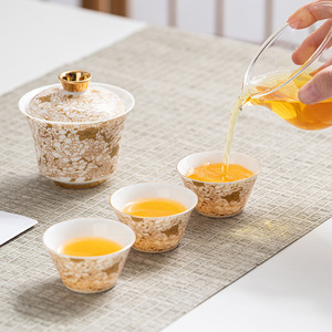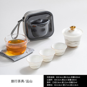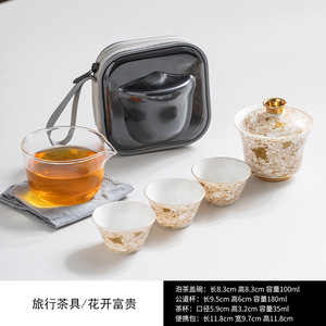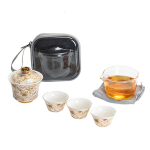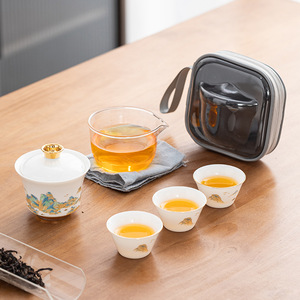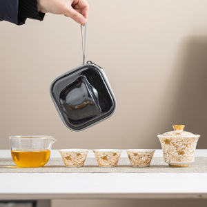 高級描金旅行茶器セット陶磁器快客杯一本三杯携帯ケース茶蓋三杯セット