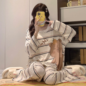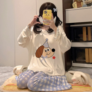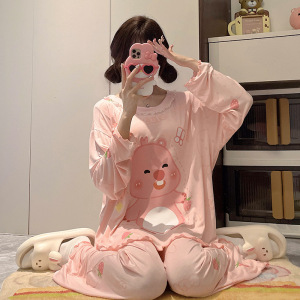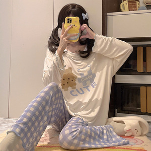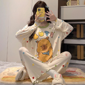 モーダル綿パジャマ少女春秋夏涼感薄い長袖かわいいカピバラホームウェア胸パッド付き