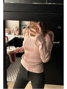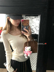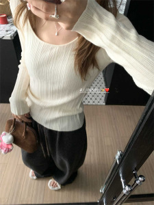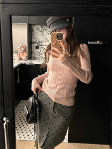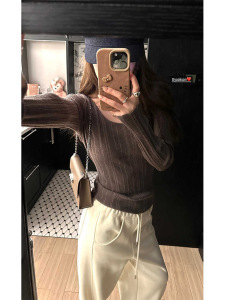 グースガールの黒哥秋冬カプセルは底を打って快適で、人を選ばない女性は冬に身を修めてやせているu襟のニットの底のシャツを現します。