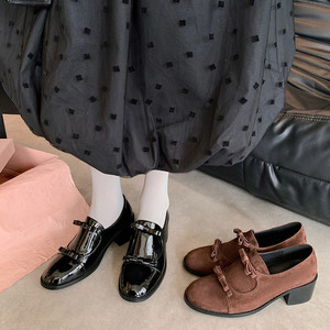 本革の丸い蝶結びの小さい革靴の太さと靴の女性のメアリー珍靴の楽福靴の中で女性の深い口の靴と潮があります。