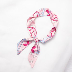 長方形のシルクスカーフをヘアバンドやバッグの飾りとして使える、斜めにカットされたシンプルで汎用性の高いリボンです。女性が髪を結んだり、バッグを飾ったりするのに最適です。