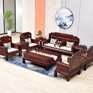 現代復古国標紅木家具客間セットインドネシア黒酸枝紅木ソファー国色天香佛山