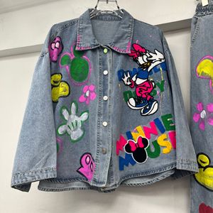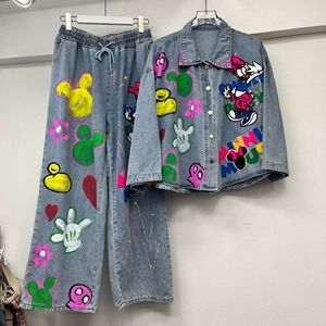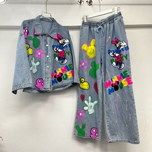 2025春の新作アニメ落書き重工デニムコートストレート着痩せワイドパンツ2点セット