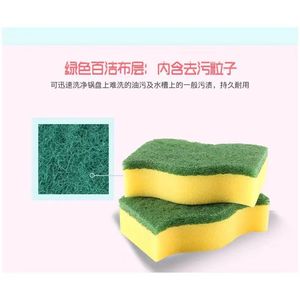 妙潔スポンジたわし、油汚れ落としタオル、多機能キッチン家庭用食器洗い布、油がつきにくいスポンジワイプ2枚
