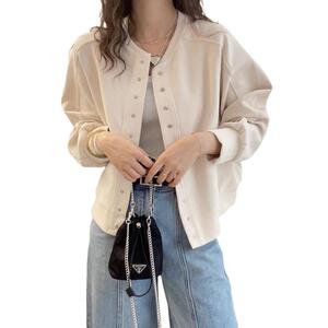 カーディガンのショートコート女性ヨーロッパ駅2025春秋新作ファッションカジュアルゆるい大きいサイズ丸首野球服