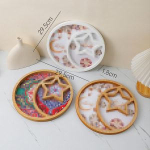 越境現貨 丸型木製置物 星月トレイ 工芸品飾り ホリデー ホーム収納装飾 卸売