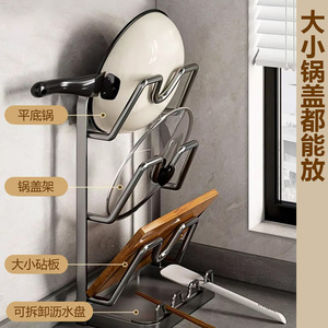 卸売鍋蓋ラック 穴あけ不要 キッチン収納ラック 壁掛け式まな板置き 多機能収納ラック 収納グッズ