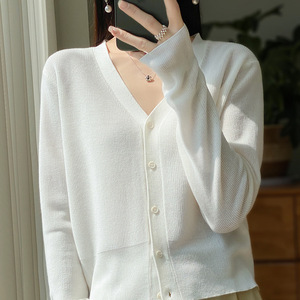2025春夏新作レディースv字襟ニットカーディガンシンプル純色百合ショート長袖コートブラウスファッション