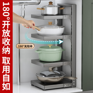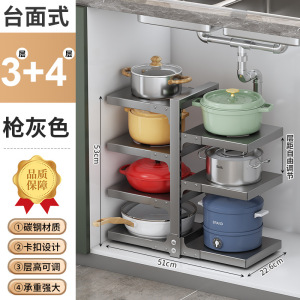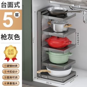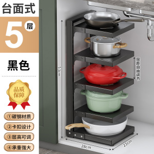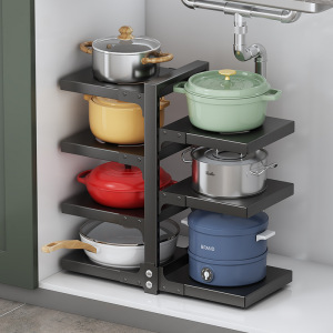 台所の鍋棚の水中の槽の家庭用の箱の中で階層的に鍋棚の戸棚を置いて多層の物置棚の鍋の収納棚を調節します。