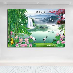 流水生財風景ポスター山水画壁貼りリビング装飾壁掛け絵テレビ背景壁自己貼り付け絵