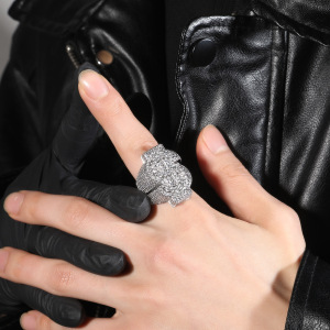 欧米のクロスボーダーの人気ヒップホップのドルの記号はドリルの指輪の大衆の設計の男性のリングのアクセサリの卸売りを満たします。