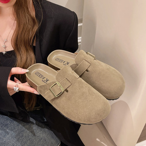 包頭英倫ベーケン靴の女性2025年の新型春秋の厚い底の博ケンの半スリッパの外は1足の怠け者の靴を履いています。