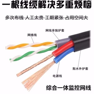 屋外4芯8芯ネットワークケーブル電源付き一体線ネットワーク監視総合線複合線300メートル盤