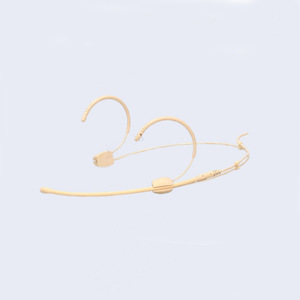 生放送のネットの授業のヘッドセット式の無線マイクの肌色の小さいマイクの頭をかぶってみます。